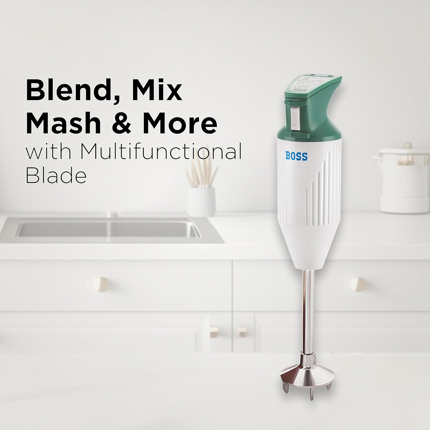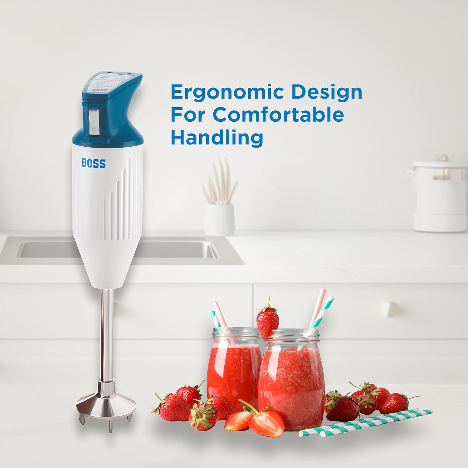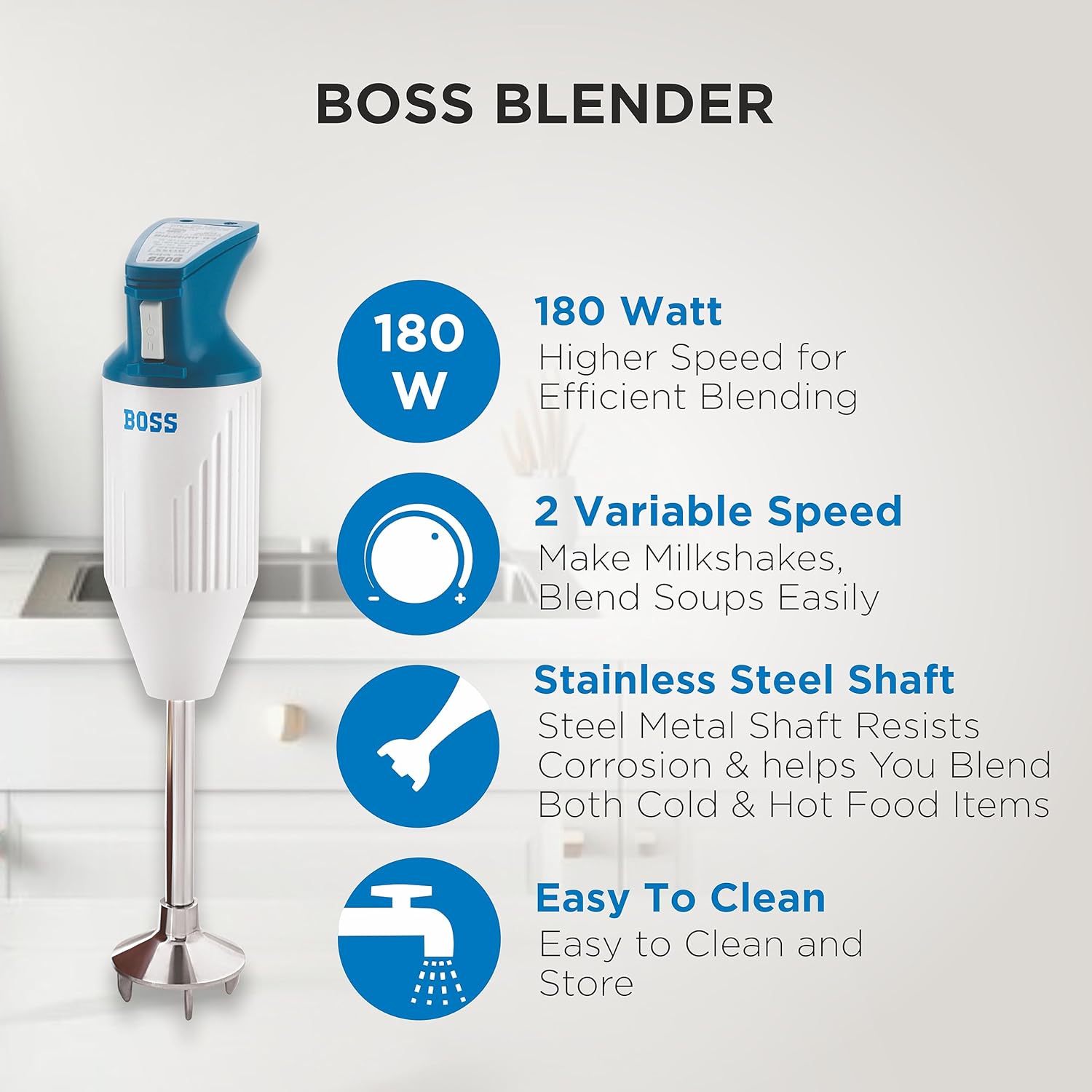 BOSS Stainless Steel B131 Portable Hand Blender 180 Watts | Variable Speed Control | 3-Year Warranty on motor | Easy To Clean And Store | Isi-Marked