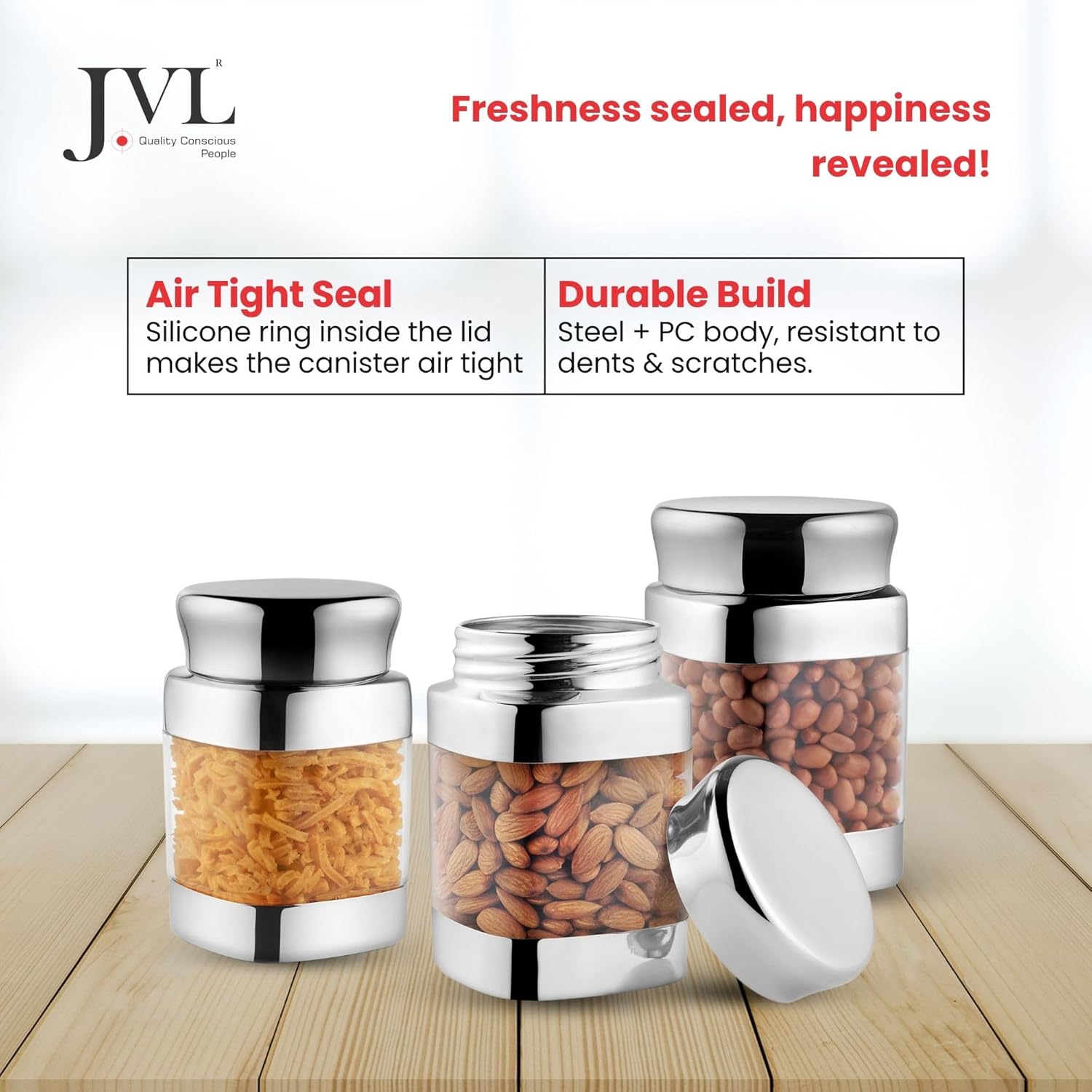 JVL Square Canister Container for Kitchen Storage Stainless Steel capacity 1.4Liters Storage Jar for Snack Coffee Tea Groceries SQC 4