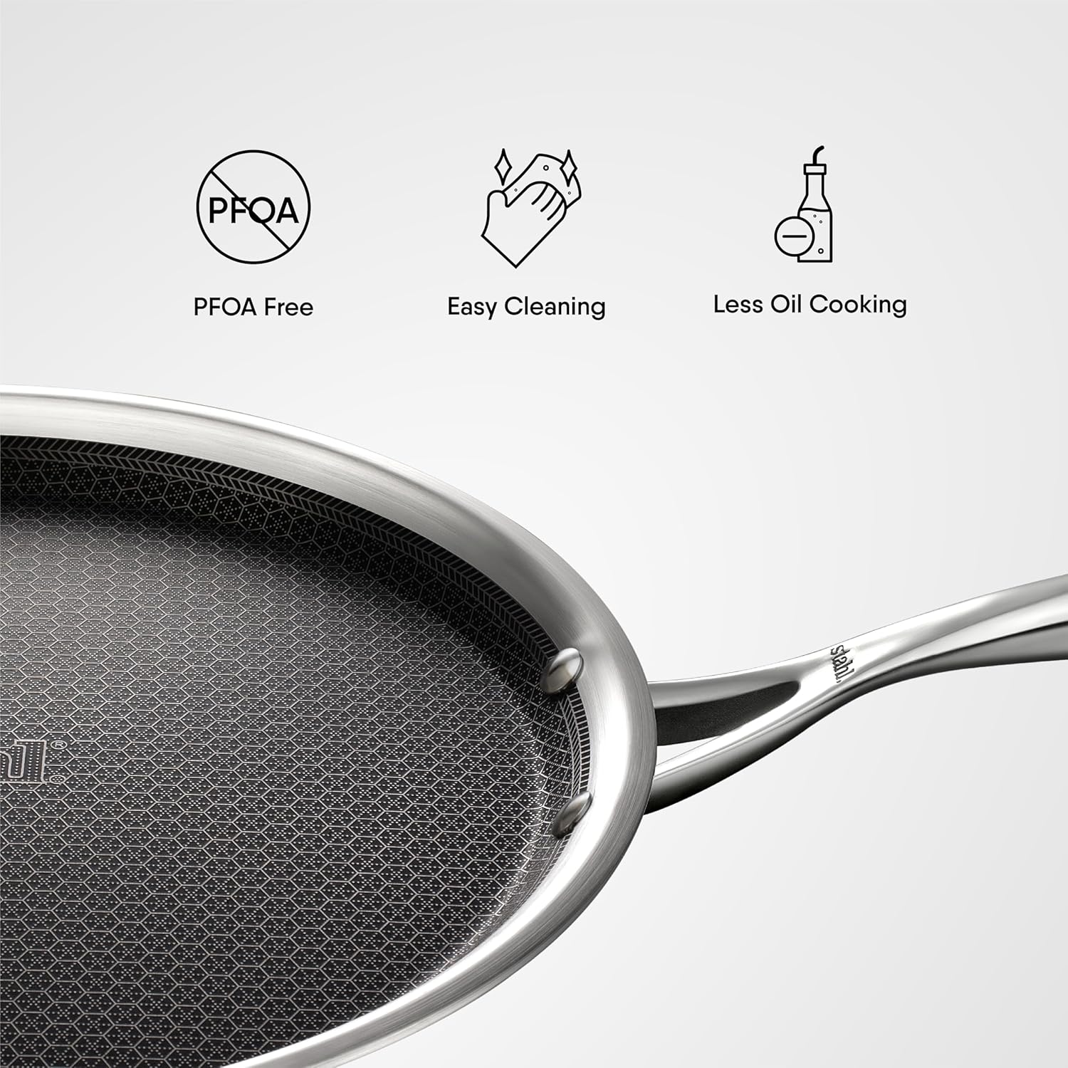 Stahl Artisan Hybrid Triply Dosa Tawa 28cm, Dosa Tawa with Induction Base, Non Stick Pan, Stainless Steel Scratch Resistant Dosa Tava, 28 cm