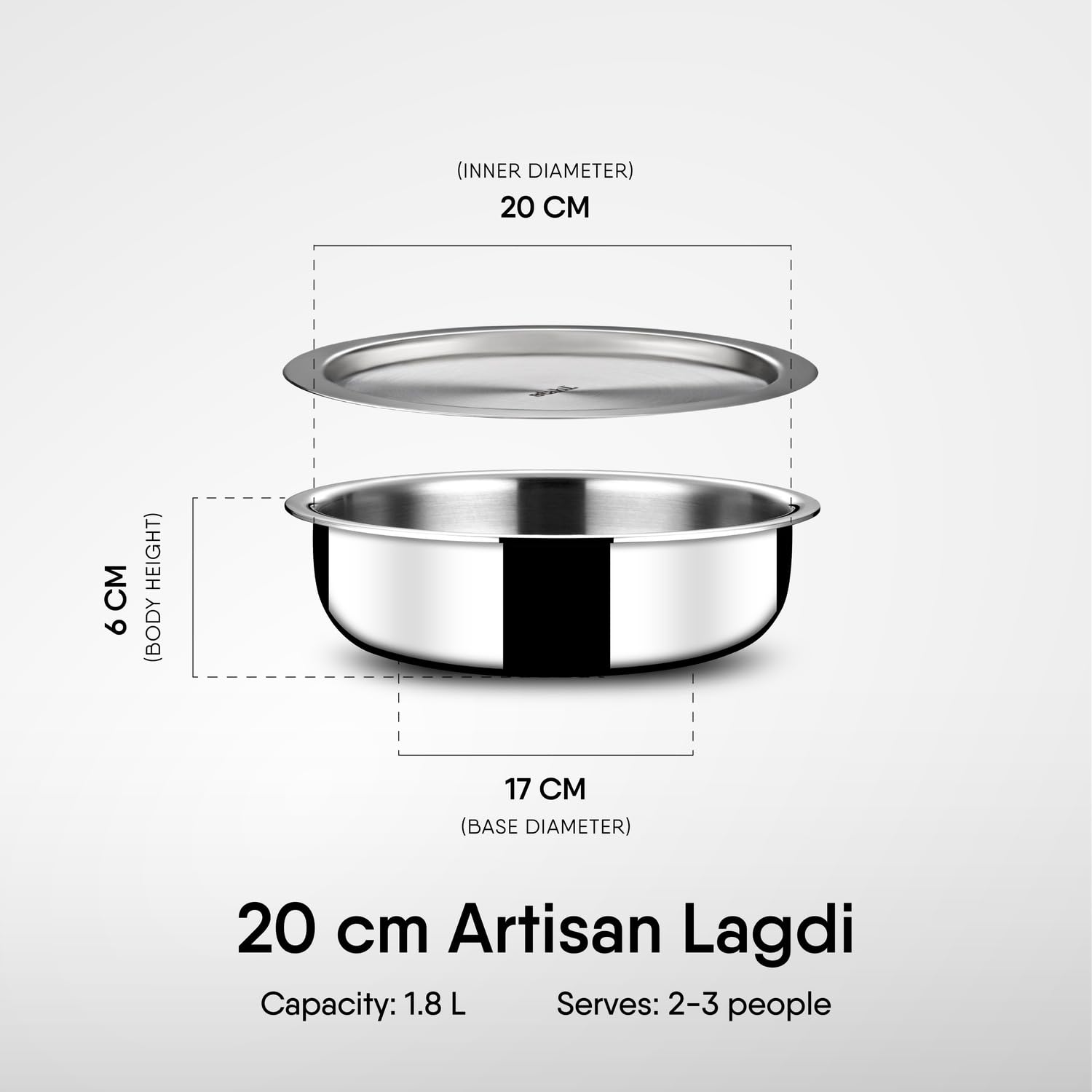 Stahl Artisan Lagdi 20 cm 1.8L, Triply Stainless Steel Casserole | Induction & Gas Compatible | with Lid