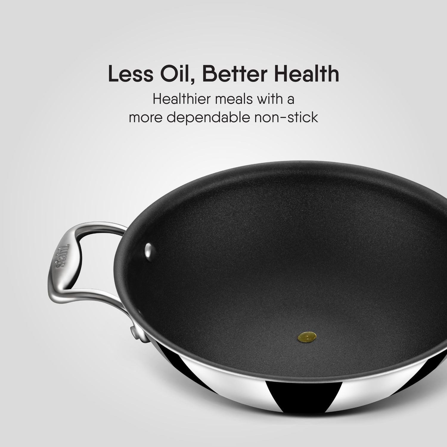 Stahl Artisan Schild 26 cm Kadhai Triply Stainless Steel PEEK-Reinforced Kadhai Induction & Gas Compatible with Glass Lid