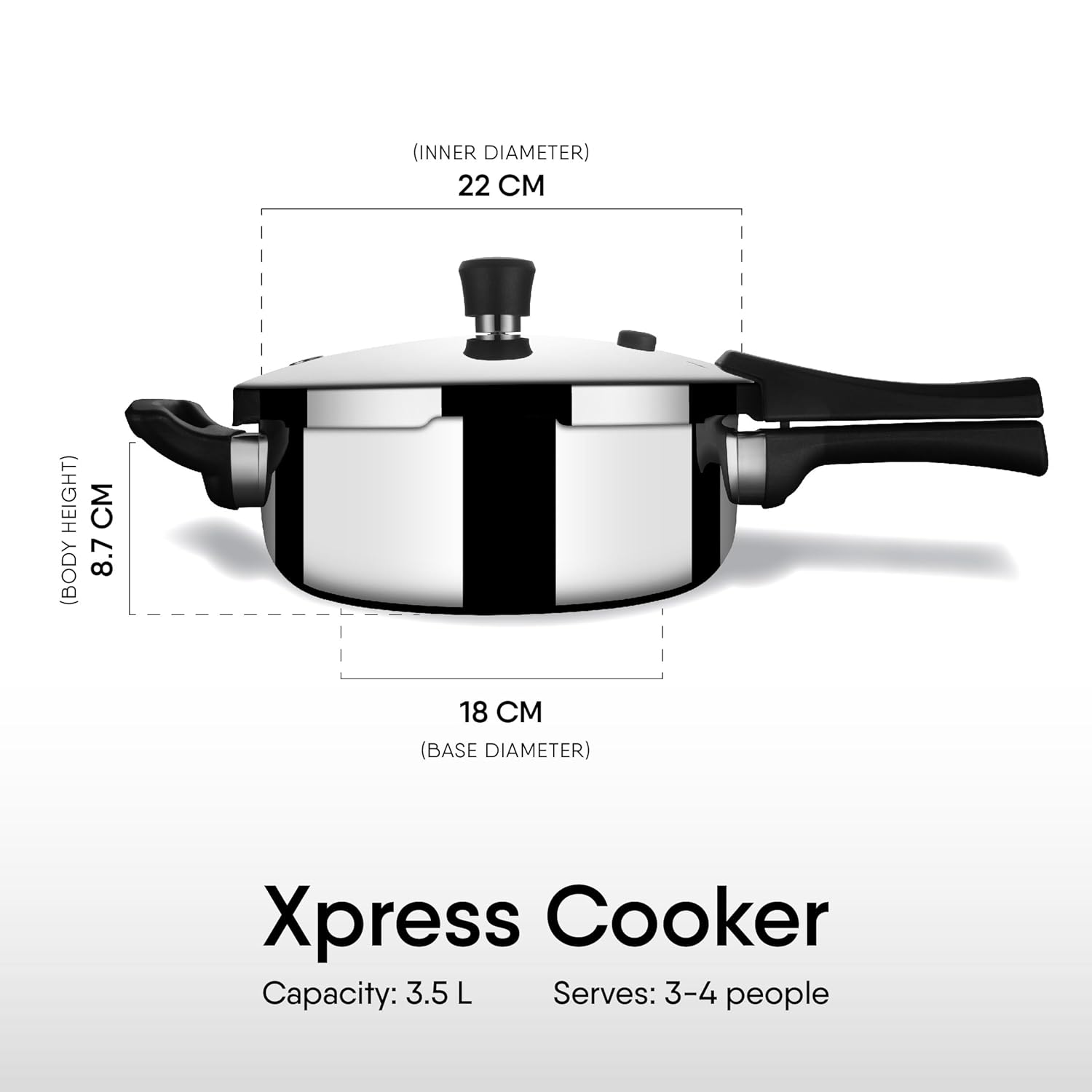 Stahl Xpress Cooker Triply Pressure Cooker Pan 3.5 L, Outer Lid Pressure Cooker 3.5 L, Induction & Gas Stove Compatible, 5 Years Warranty
